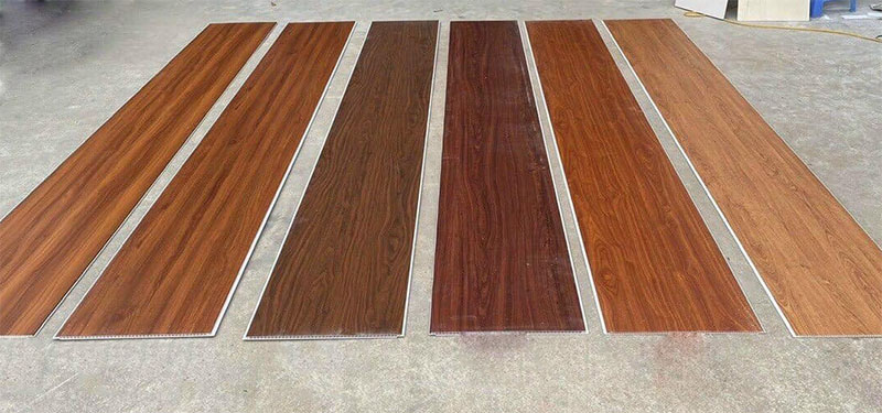 - Lớp cốt nhựa PVC hoặc SPC: giúp tấm ốp có độ cứng, không cong vênh, không mối mọt.